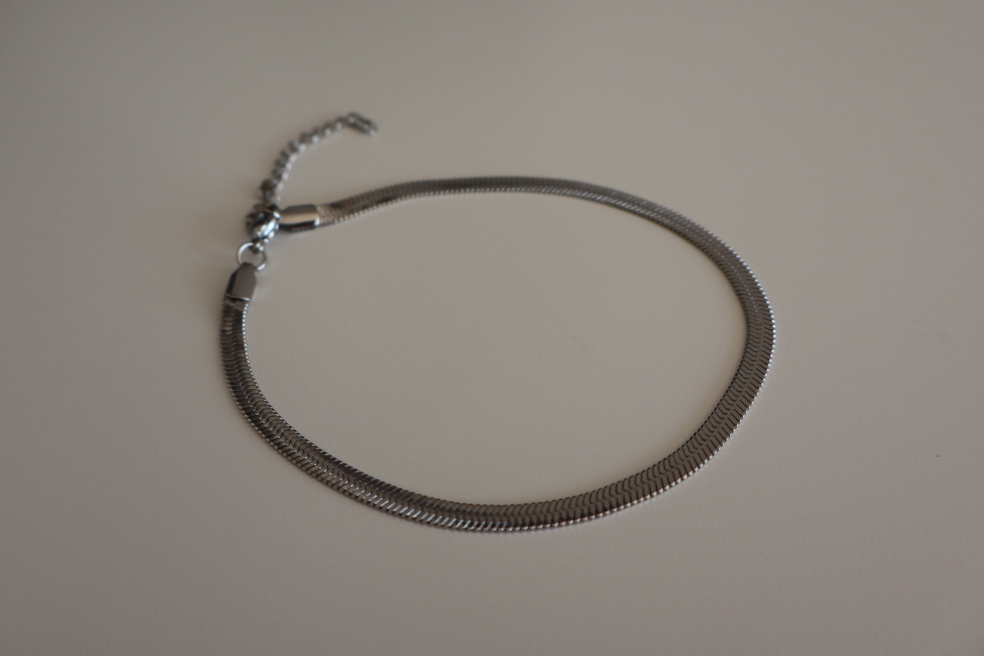 Tobillera de Acero Inoxidable. Diseño clásico de cinta en plateado de tamaño ajustable. Un diseño atemporal, ideal para marcar la diferencia de una manera elegante y sutil.